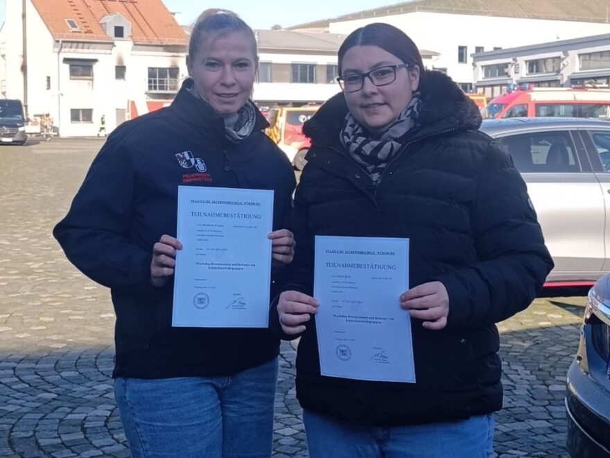 Zwei Kameradinnen der Freiwilligen Feuerwehr Oberkotzau nahmen an der Staatlichen Feuerwehrschule Würzburg vom 19. bis 21. November 2025 an einem