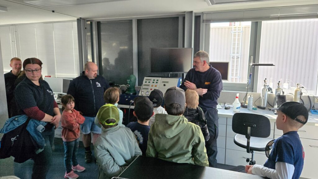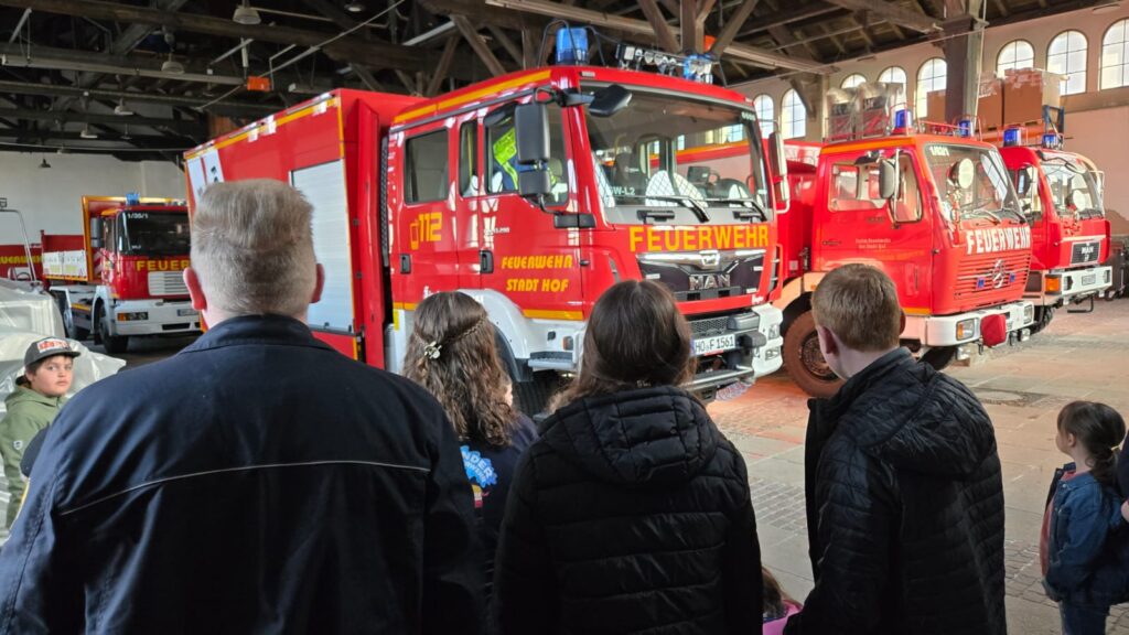 Bei unserem letzten Treffen im März besuchten wir die Feuerwehr Hof. Dort bekamen wir eine Führung von Philip und Wolfgang. Während dieser Führung stellten einige Kinder sehr schnell fest, dass diese Feuerwehr viel größer ist als unsere. Zunächst schauten wir uns den Funkraum und die Atemschutzwerkstatt an.