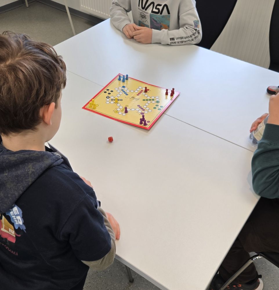 Unterrichtsraum, wo wir unter anderem UNO oder „Mensch ärgere dich nicht“