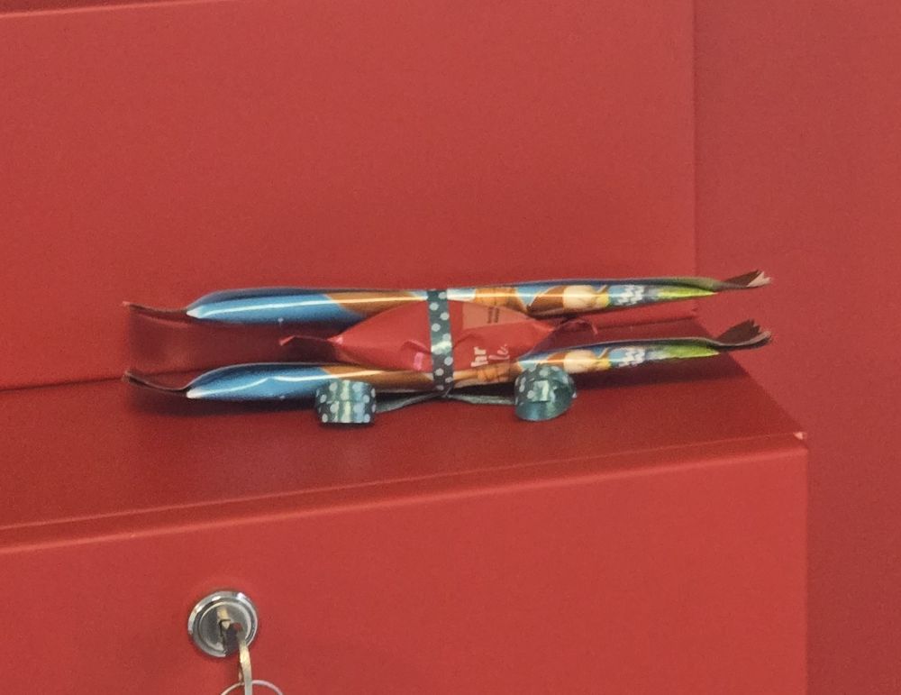 ein paar Süßigkeiten im Gerätehaus versteckt.